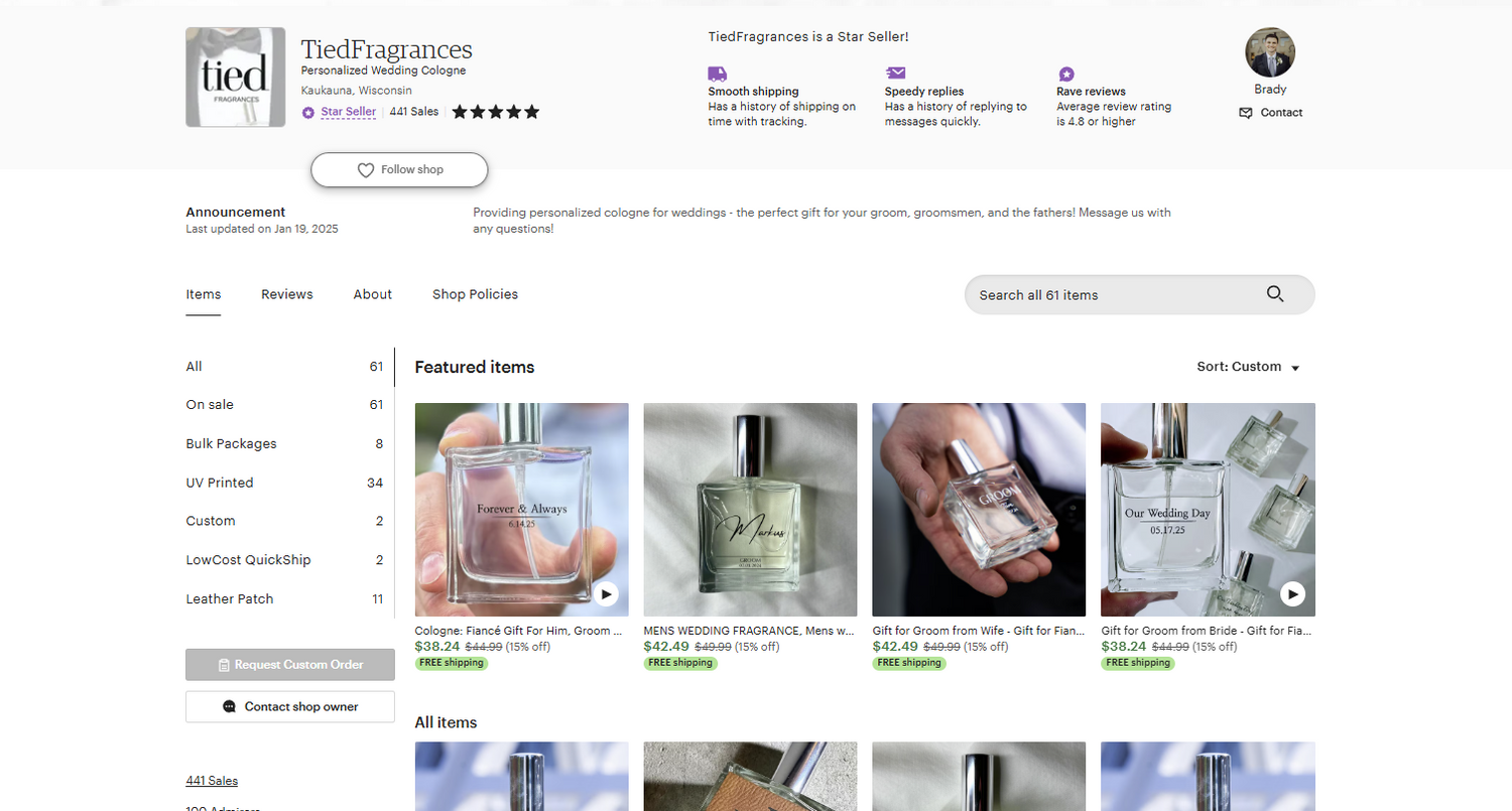 Brady was awesome to work with! These will make the perfect groomsmen gift. The smell is so nice & they are in really classy looking bottles! Will definitely reccomend to others and buy again in the future!